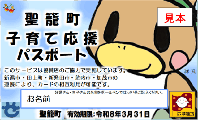 加茂市とも連携している聖籠町の子育て応援パスポート。