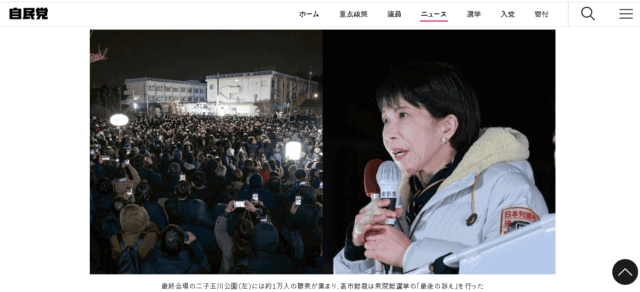数千人~数万人の有権者が集まる高市総理の演説会場では、