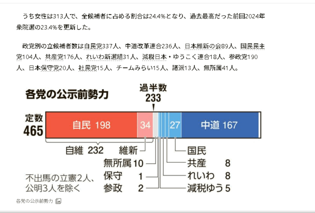 高市自民は単独過半数の233獲得確実かとすでに報道されたのち、