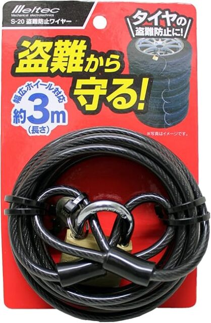 メルテック タイヤ盗難防止用ワイヤー南京錠&キー2個付き